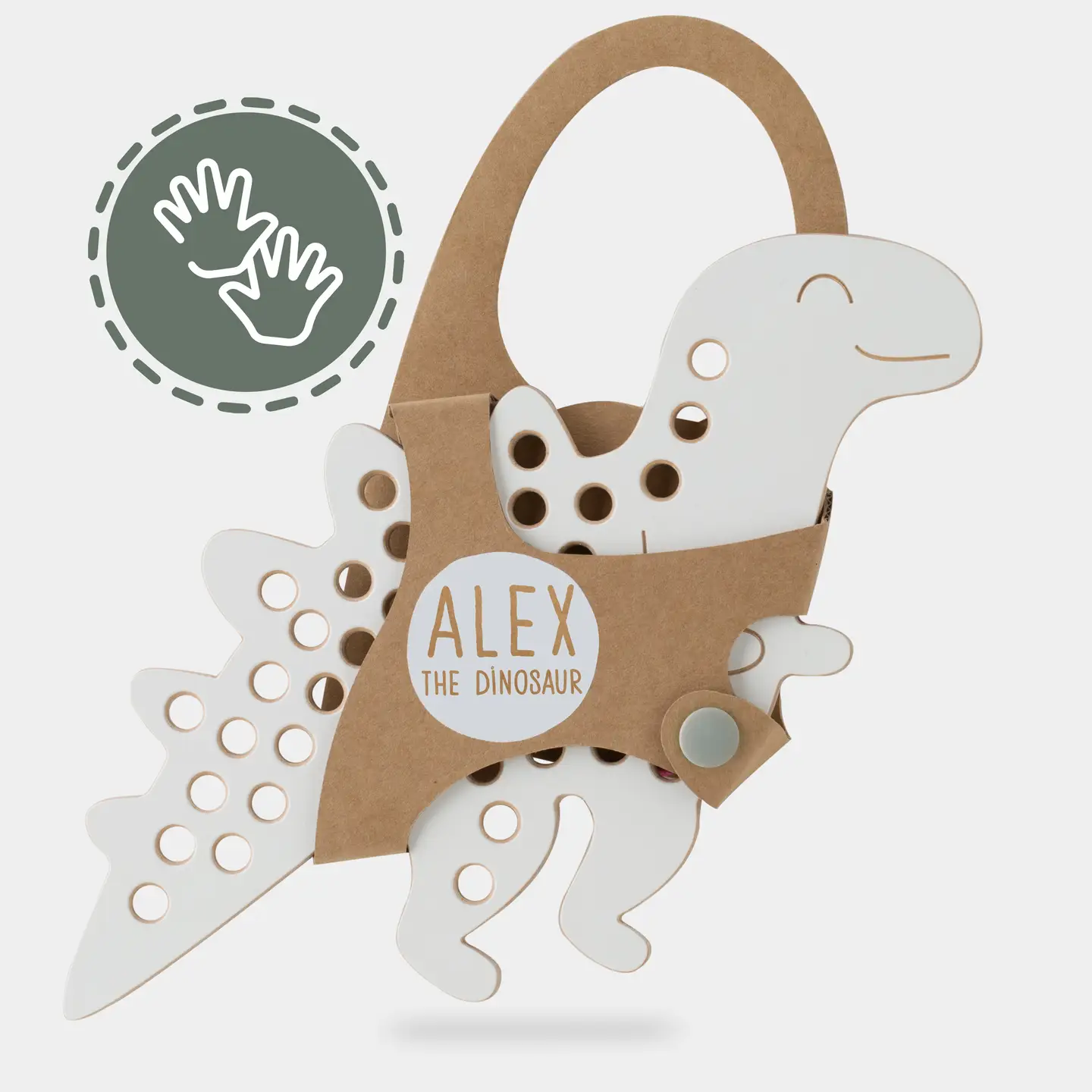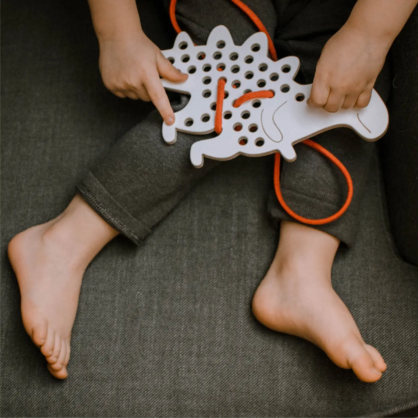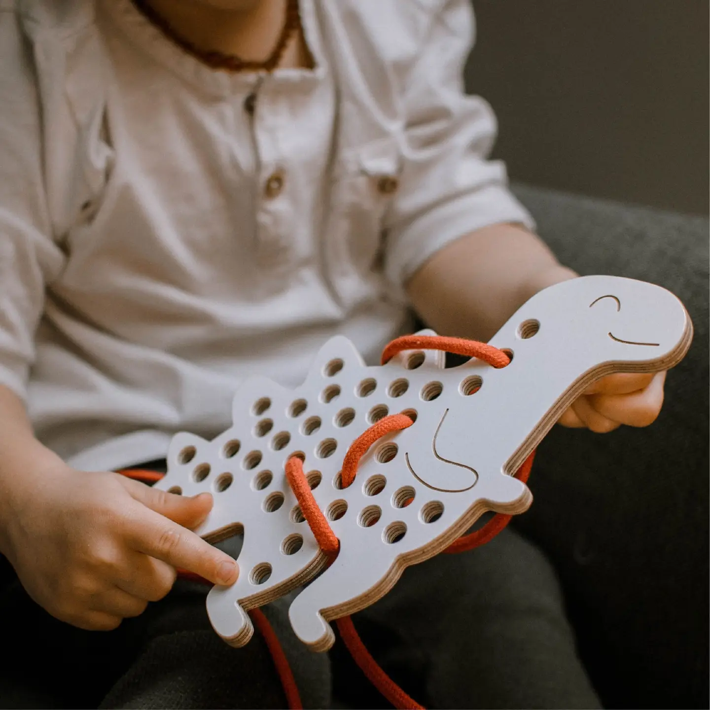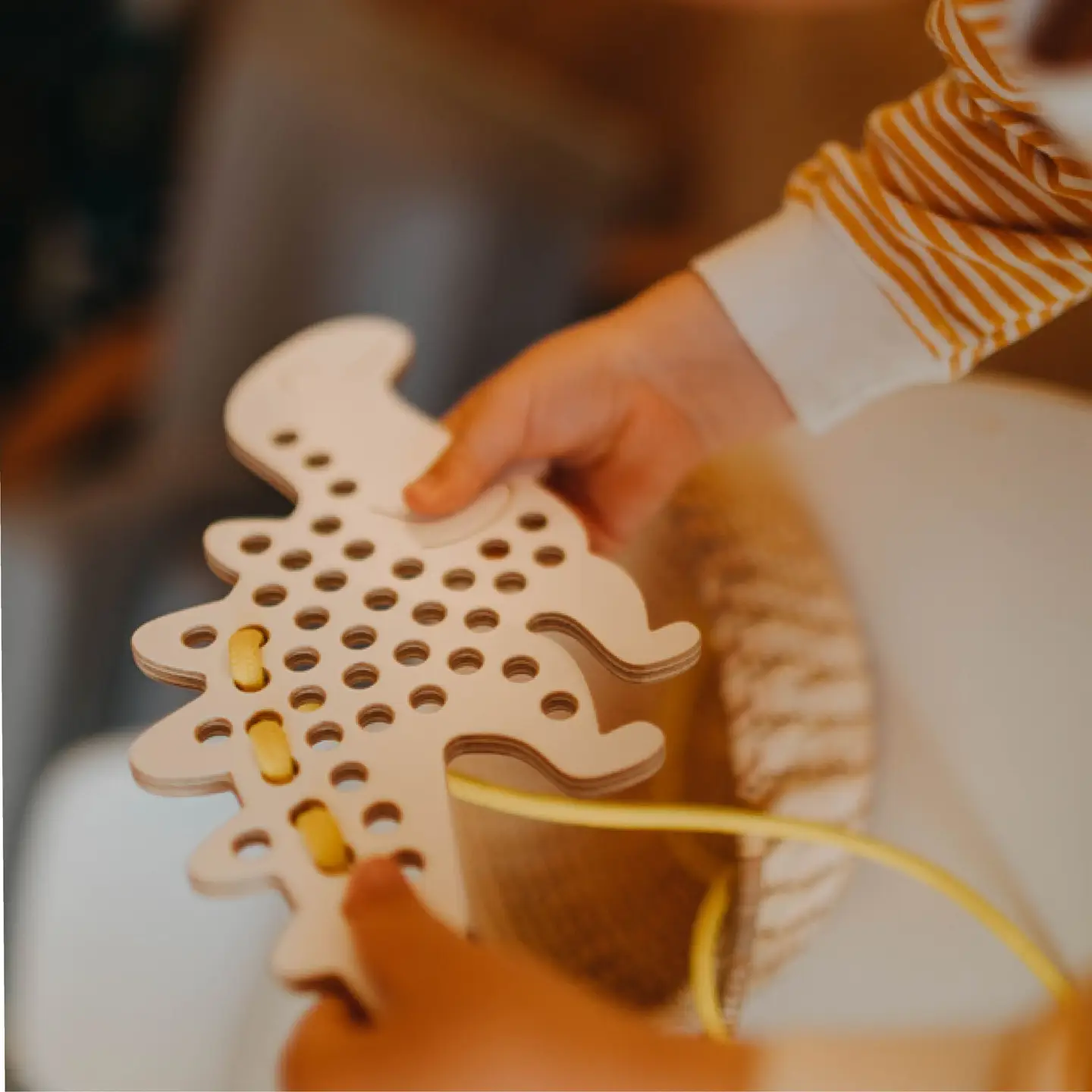 Großes Schnürspielzeug aus Holz, Dinosaurier, Montessori