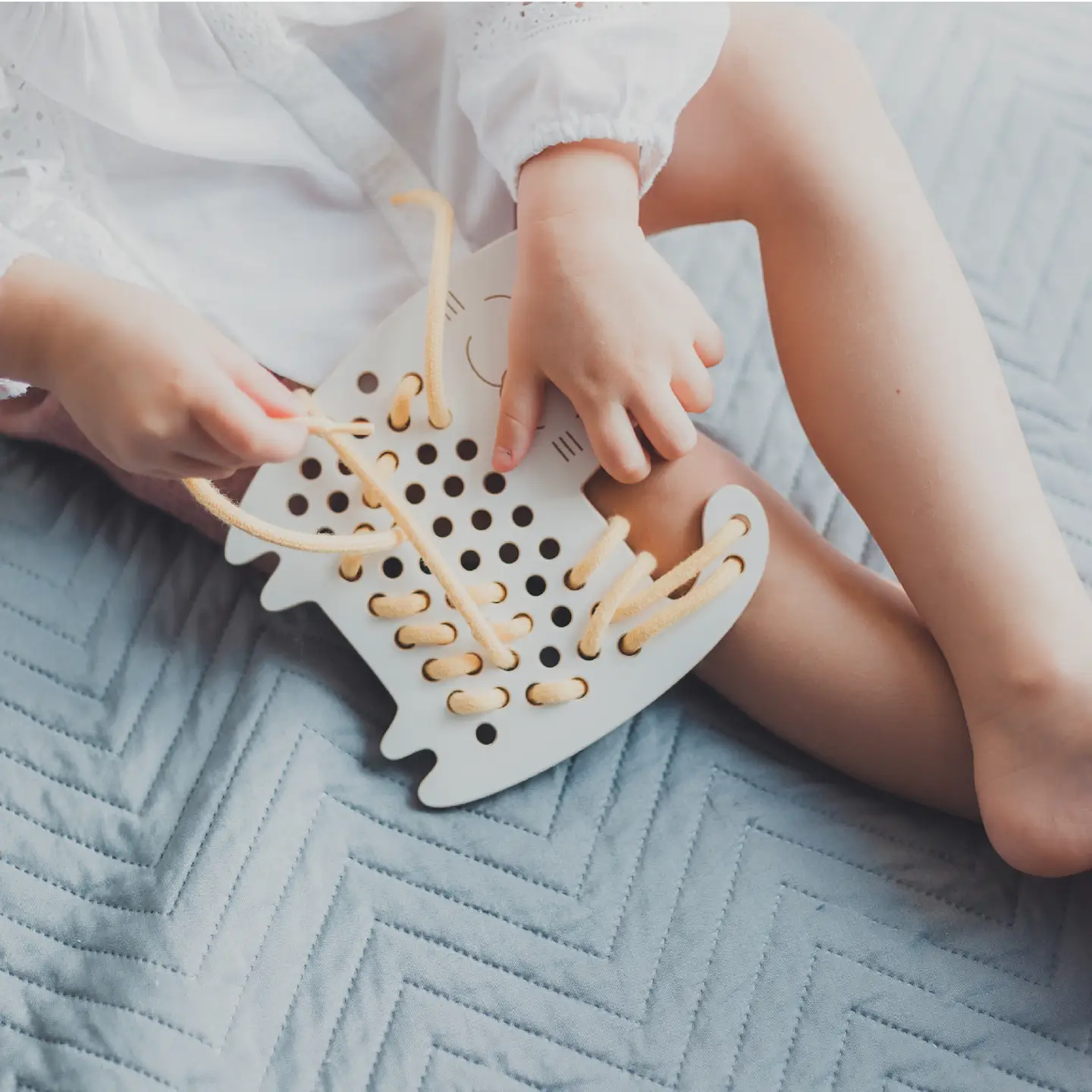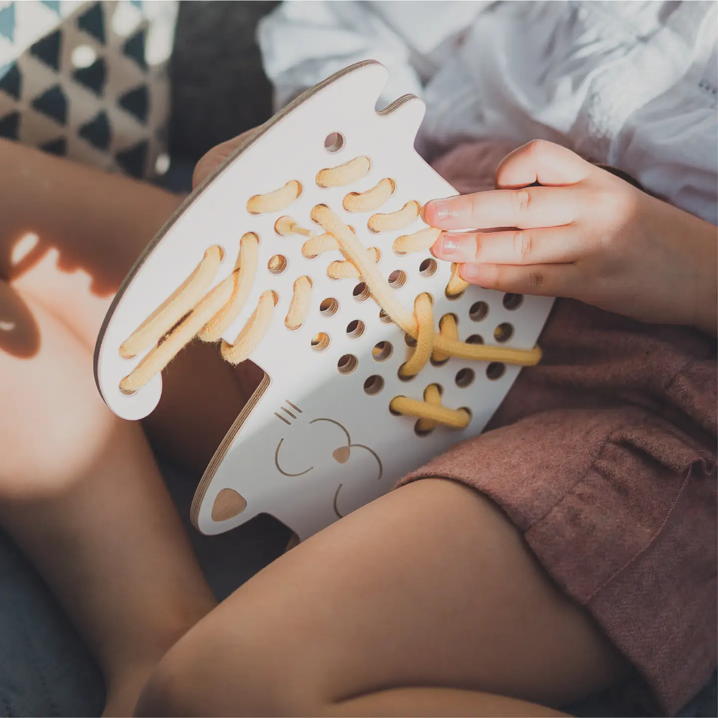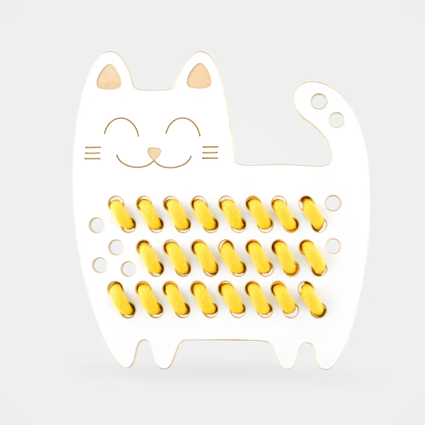 Das süße Schnürspielzeug der Marke „Milin“ fördert die Fantasie, Kreativität und Feinmotorik deines Kindes. Die Katze passt gut in eine Tasche und kann so überall mitgenommen werden. Das Set beinhaltet einen Schnürsenkel in einer zufälligen Pastellfarbe. So kann dein Kind gleich mit dem Einfädeln loslegen. Es werden ausschließlich umweltfreundliche, sichere und hochwertige Materialien verwendet. Kleinere Schnürtiere findest du ebenfalls hier im Shop.
