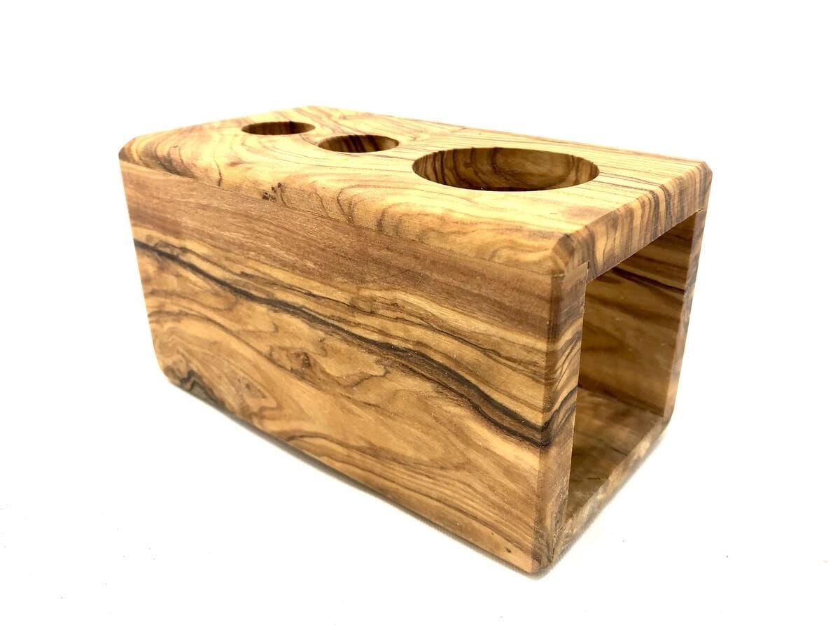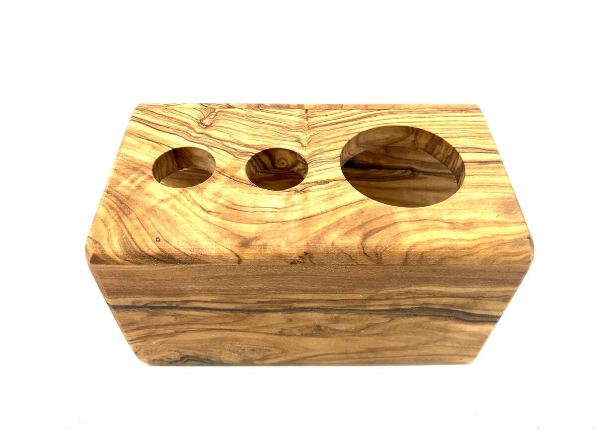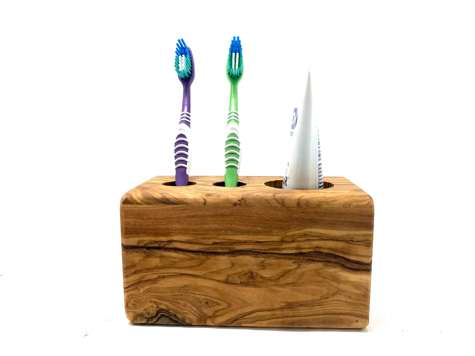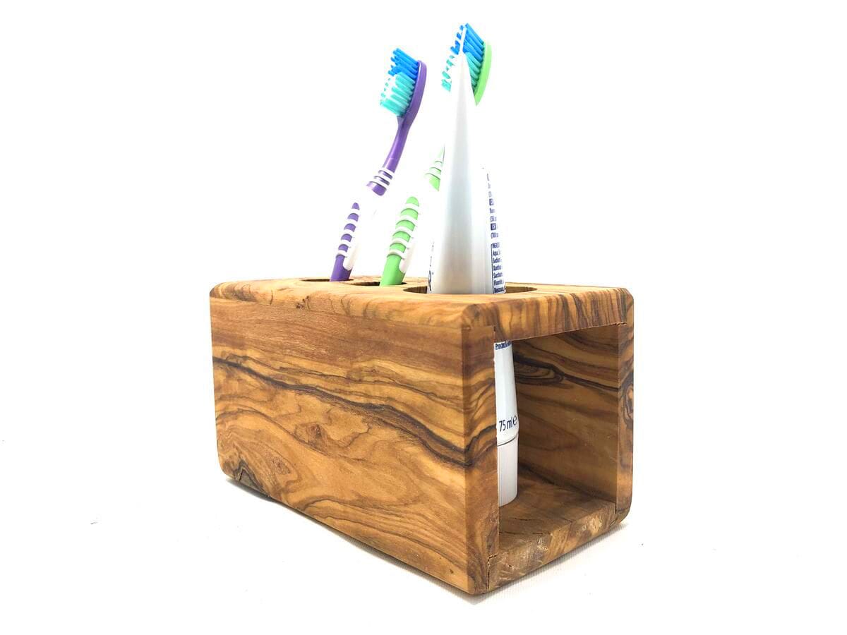 Alles hat seinem Platz! Die Station bietet Platz für Zahnbürsten und Zahnpasta und sorgt für Ordnung und ein stilvolles Ambiente. Die Zahnputzstation bringt Natürlichkeit und Eleganz in dein Badezimmer. Handgefertigt aus massivem, mediterranem Olivenholz ist jedes Stück ein echtes Unikat mit individueller Maserung und einzigartiger Farbgebung. Durch die natürliche Robustheit und antibakterielle Eigenschaft des Olivenholzes ist diese Zahnputzstation langlebig, pflegeleicht und hygienisch. Gefertigt von der Marke „Olivenholz erleben“. Weitere Küchen- und Haushaltsartikel findest du im Shop.